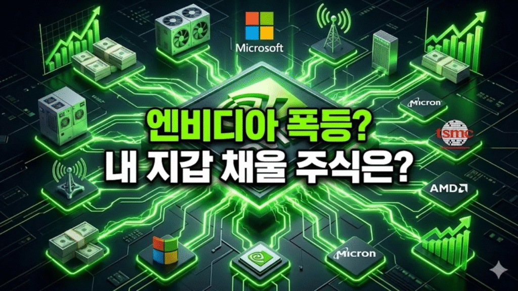 엔비디아의 실적 보고서는 사실상 전 세계의 막대한 자본이 ‘인공지능’이라는 거대한 블랙홀로 얼마나 빠른 속도로 빨려 들어가는지를 보여주는 가장 정확한 지표입니다. 오늘 살펴볼 10개의 기업들은 단순한 종목 추천 목록이 아닙니다. 이는 현대 AI가 현실 세계에서 물리적으로 어떻게 설계되고, 조립되며, 확장되는지를 보여주는 완벽한 생태계의 지도입니다. 스마트폰의 챗GPT부터 자율주행차의 두뇌까지, 이 마법 같은 청사진을 바닥부터 하나씩 뜯어보겠습니다.