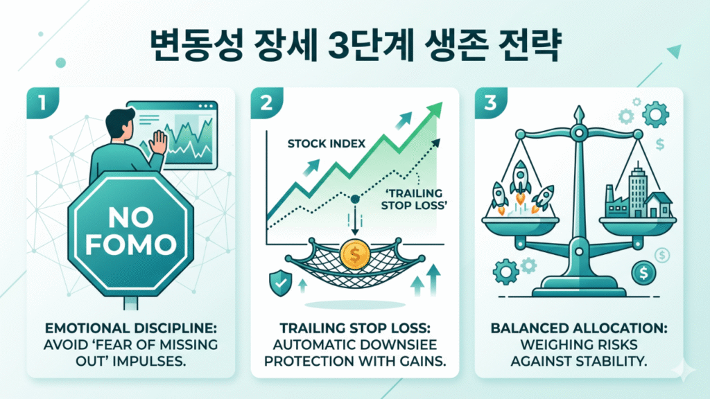 Section 4: 변동성 장세 생존 전략 — 오늘 밤 실천할 수 있는 3단계