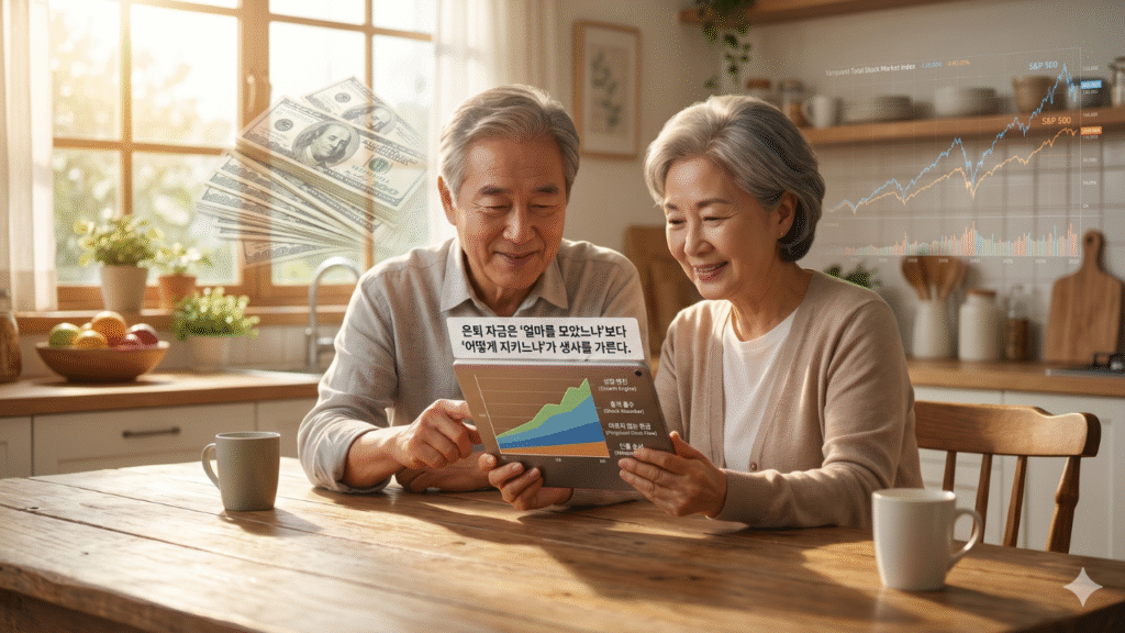 - 은퇴 전과 후의 투자 규칙은 180도 달라져야 합니다. 축적기에는 ‘성장’이, 인출기에는 ‘원금 보존’과 ‘현금 흐름’이 최우선입니다.